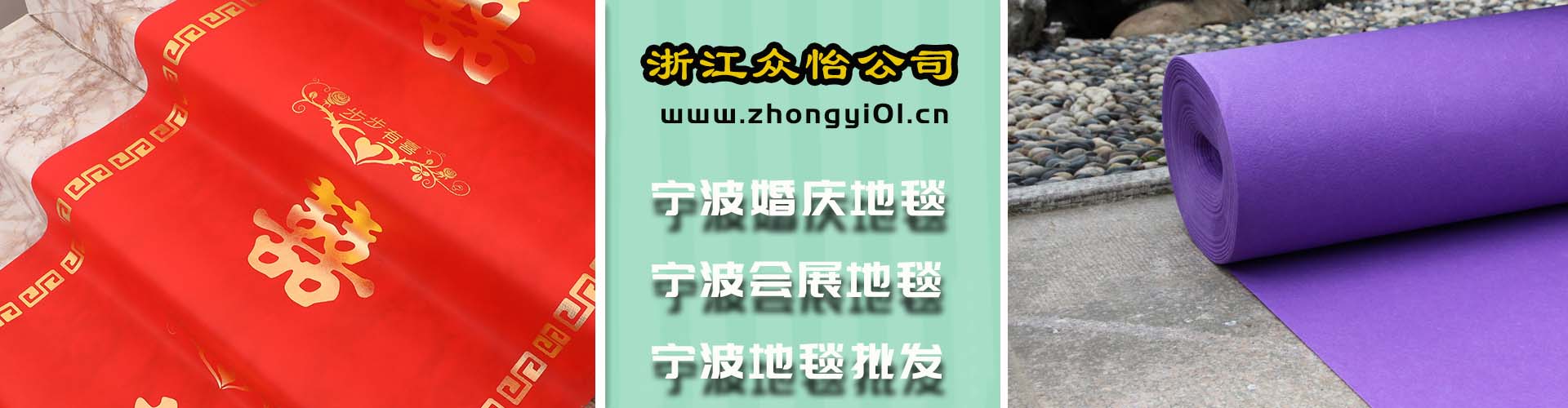 浙江眾怡環保節能科技有限公司專注提供下列產品:寧波地毯批發、寧波婚慶地毯、寧波會展地毯、寧波一次性地毯等寧波地毯系列產品,根據客戶需求均可生產,規格齊全,色彩多樣,種類繁多。